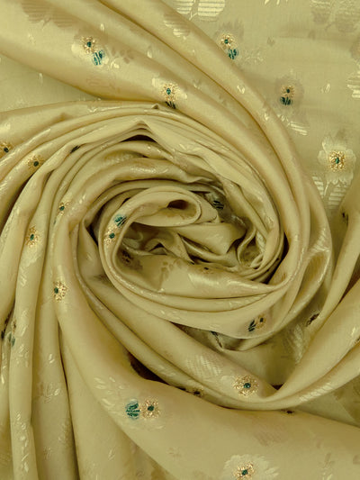 Pearl/Cinereous Taupe Polyester/Wool Floral Weave Jacquard Suiting - NY Designer - 56W