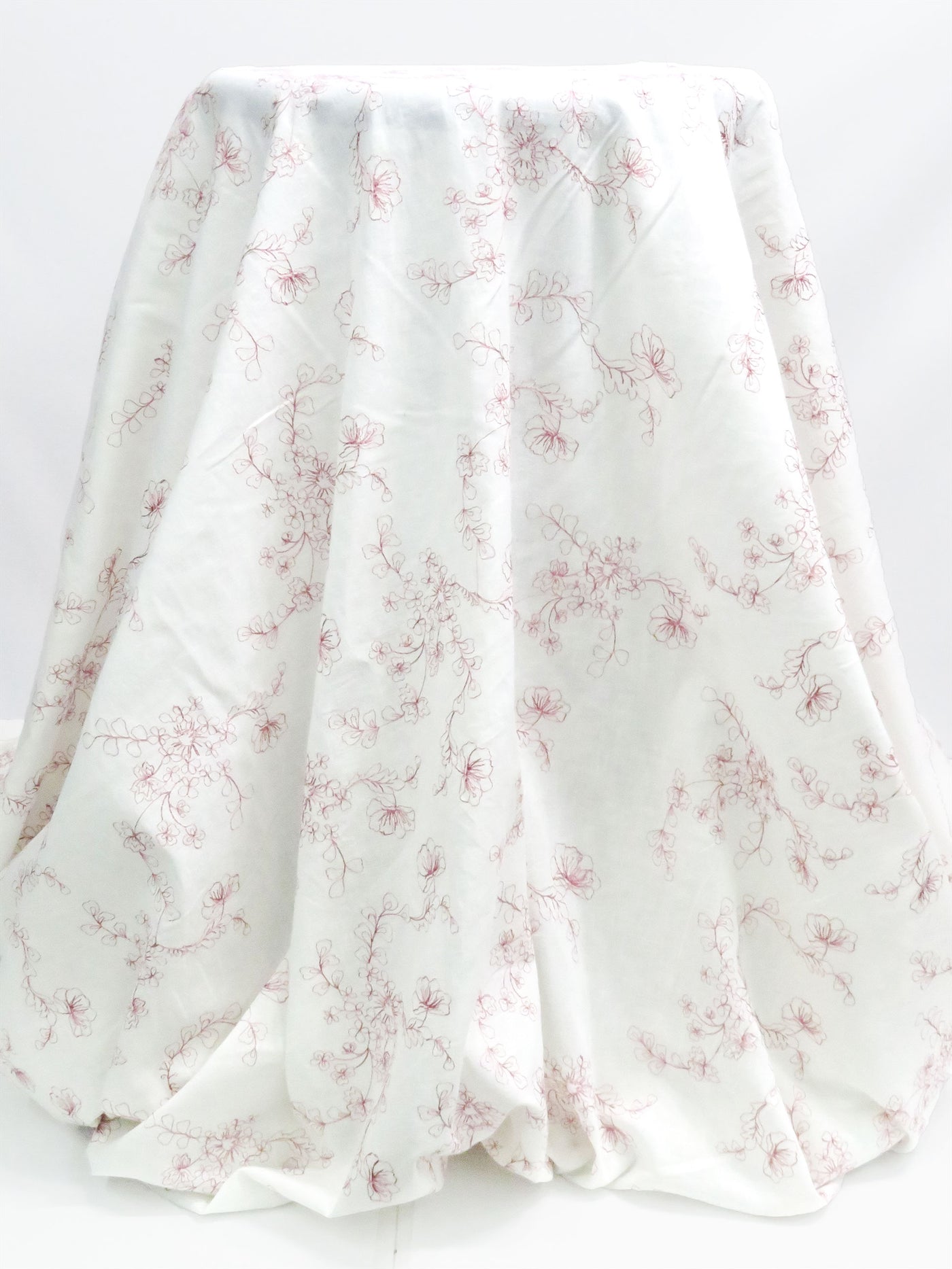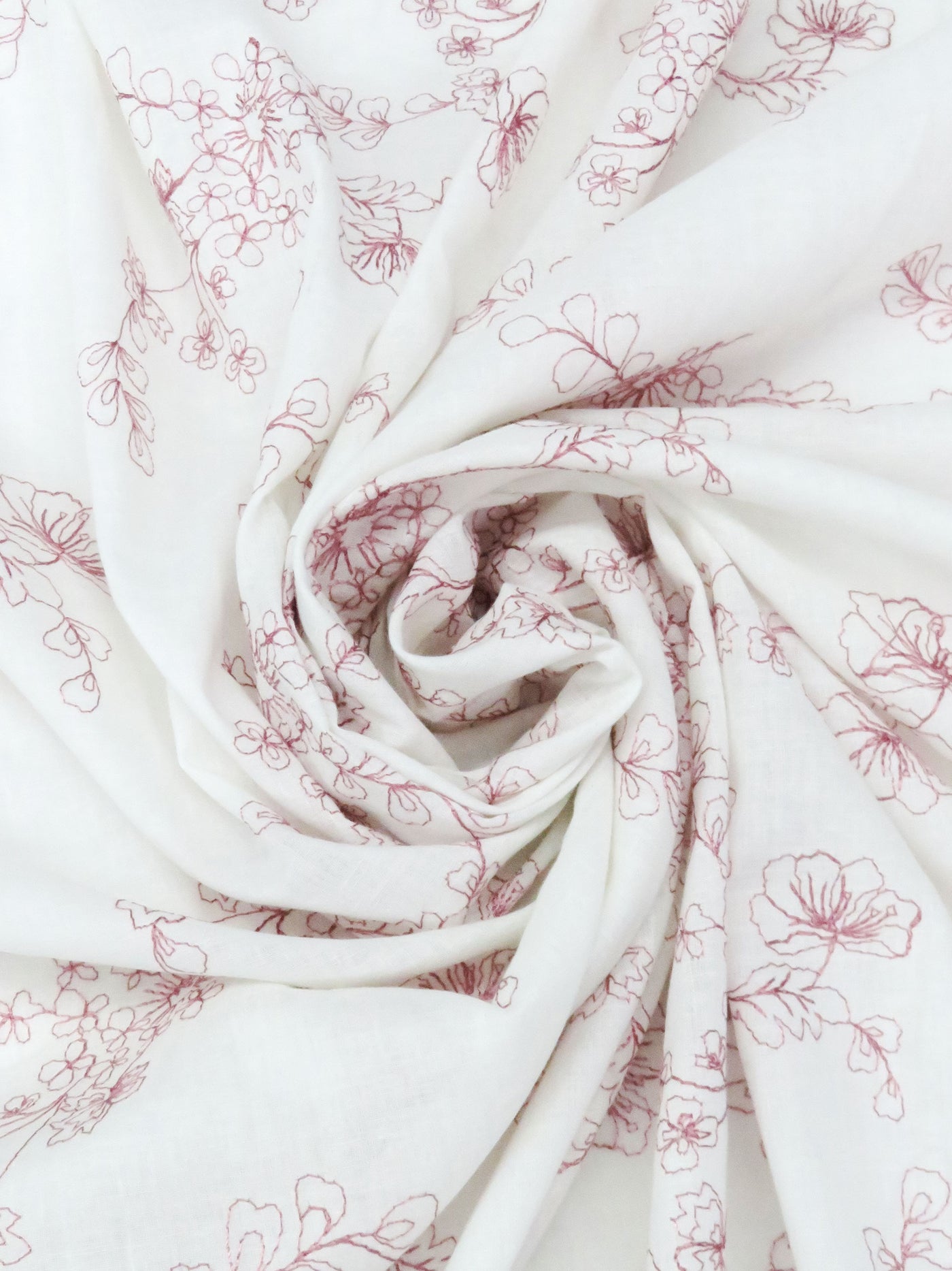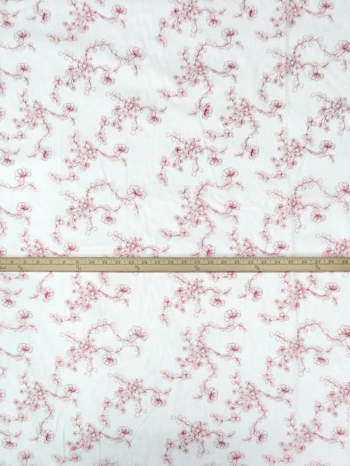 Antique White/Mauve Rose 100% Cotton Floral Embroidered Voile 56W