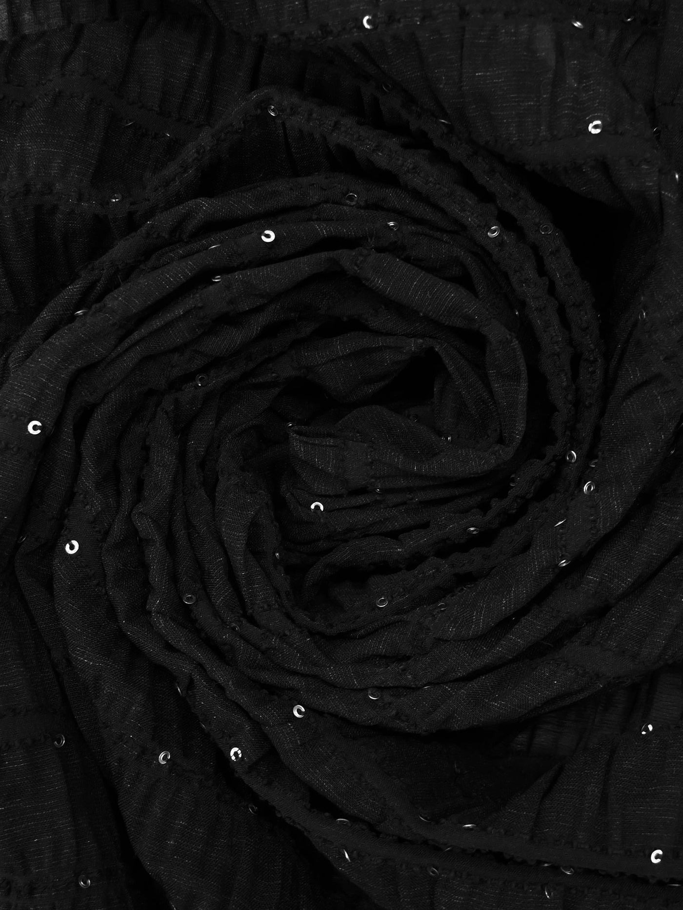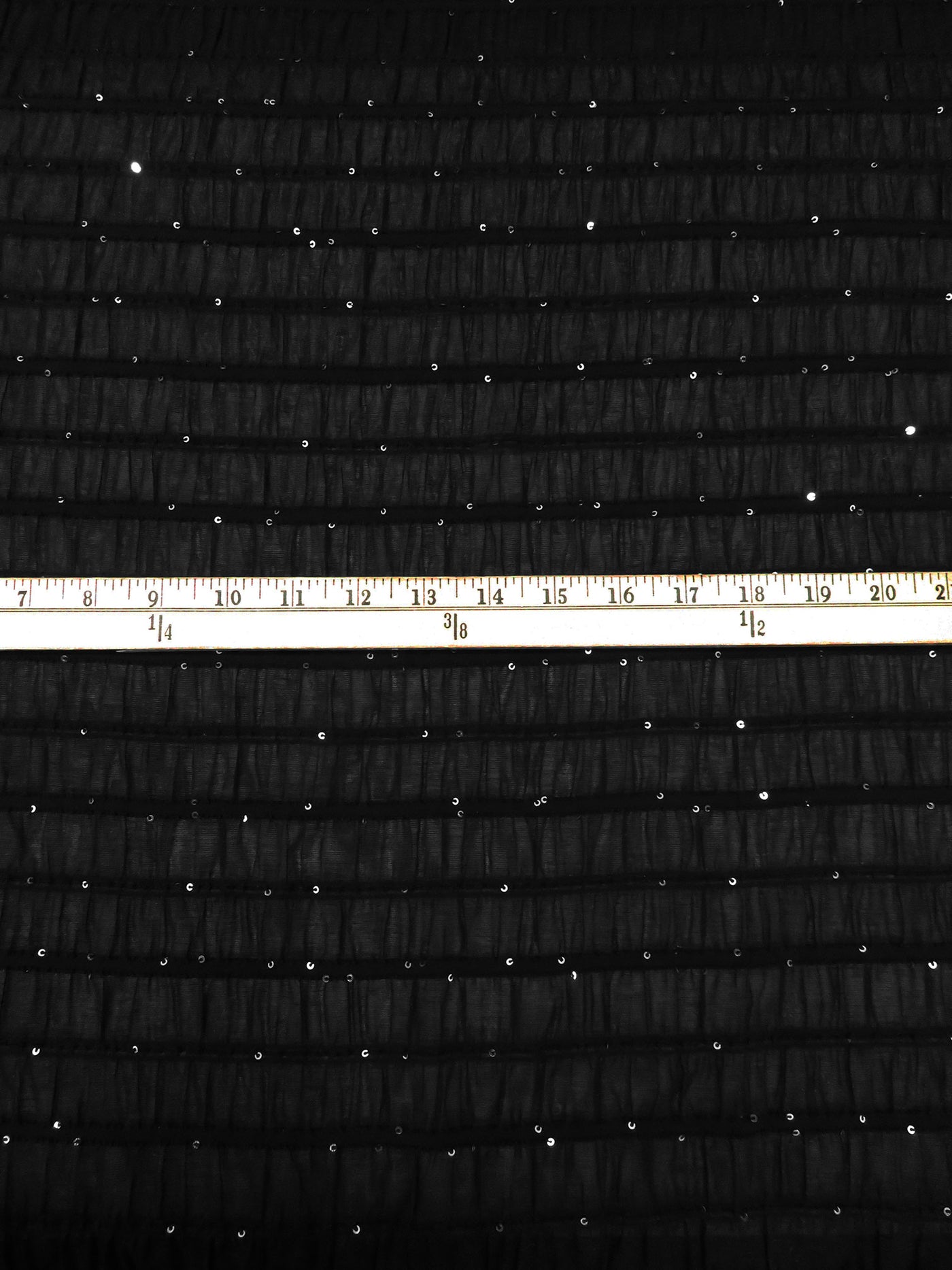 Black 100% Polyester Horizontal Stripe Sequin Shirred Chiffon - NY Designer - 54W