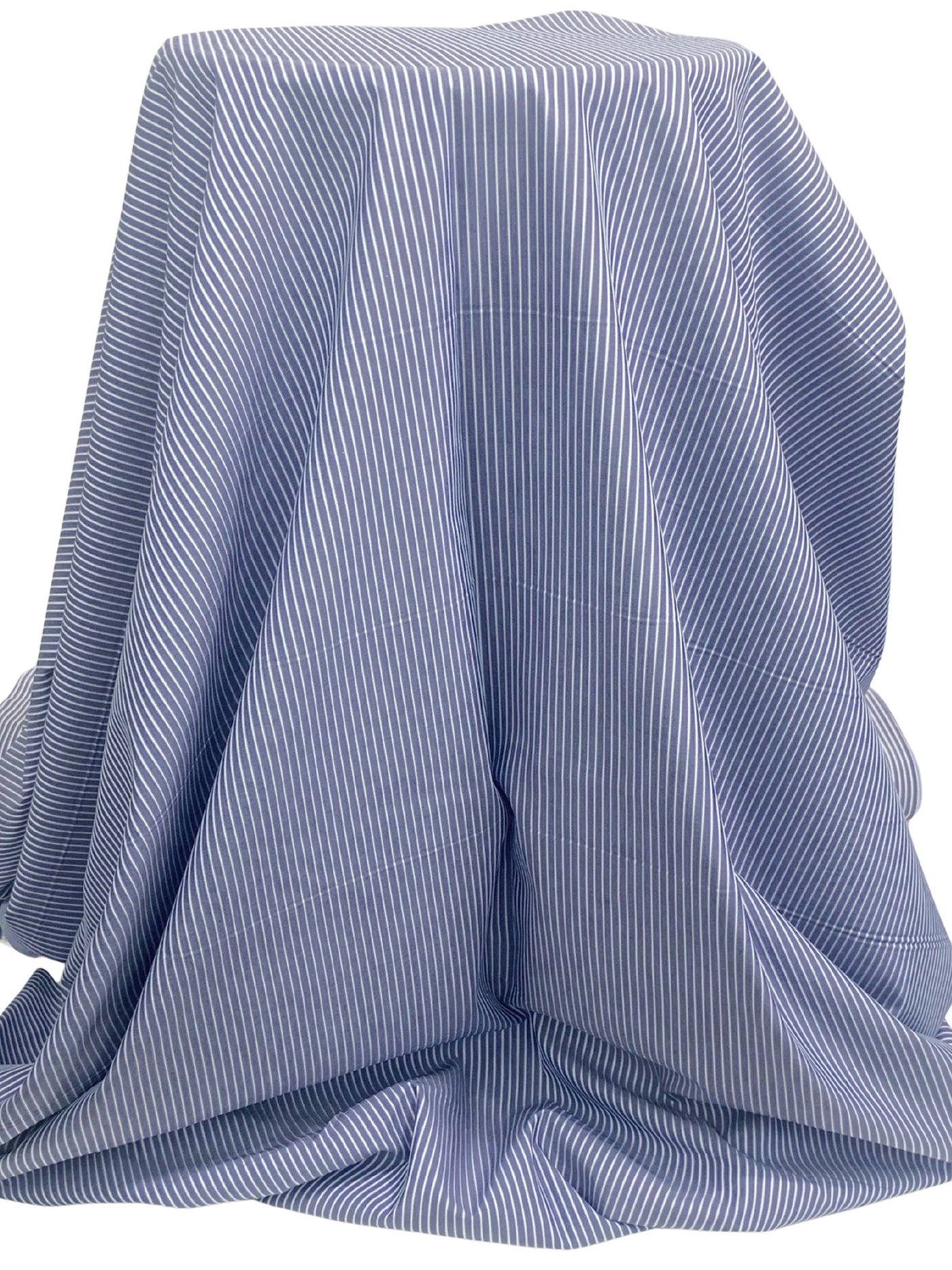 Dark Royal Blue/White/Soft Marine Blue 100% Cotton Vertical Stripe Weave Shirting 58W