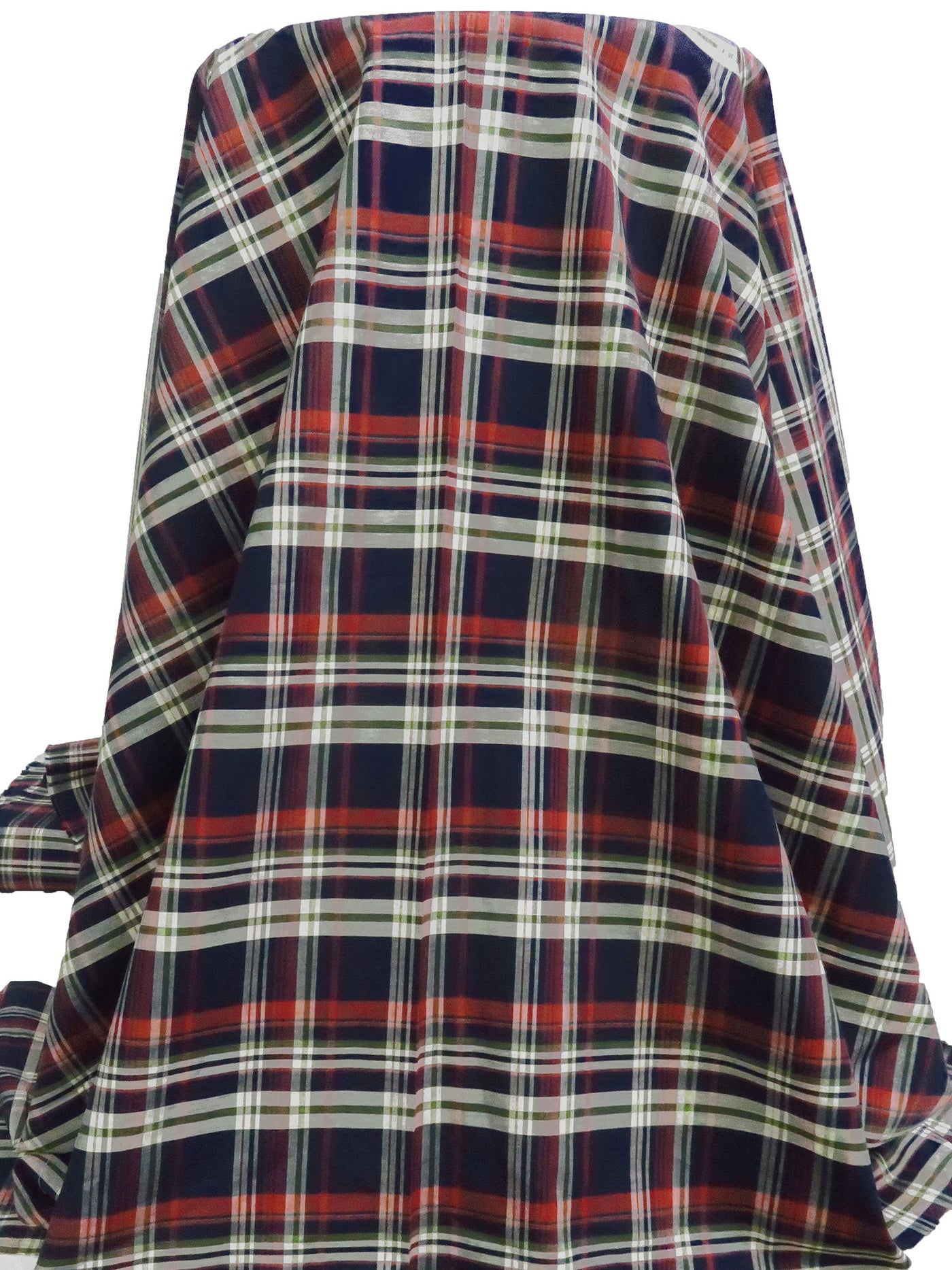 Maroon/Navy/Off-White/Olive 100% Cotton Plaid Shirting - NY Designer - 56W