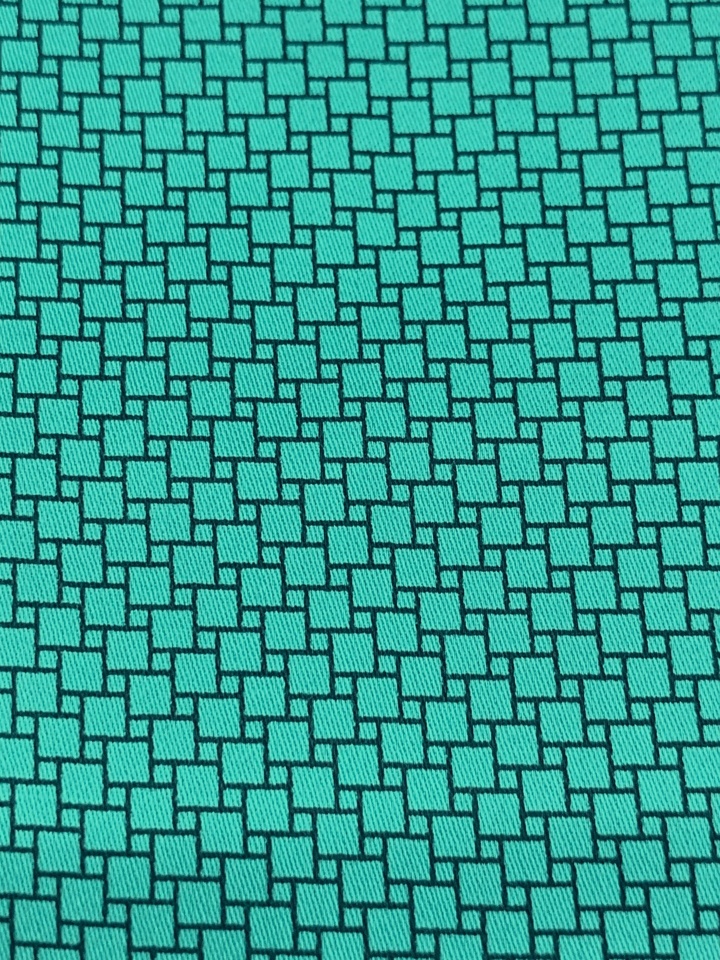 Medium Turquoise Blue/Black 100% Cotton Mini Geometric Print Sateen Shirting 57W