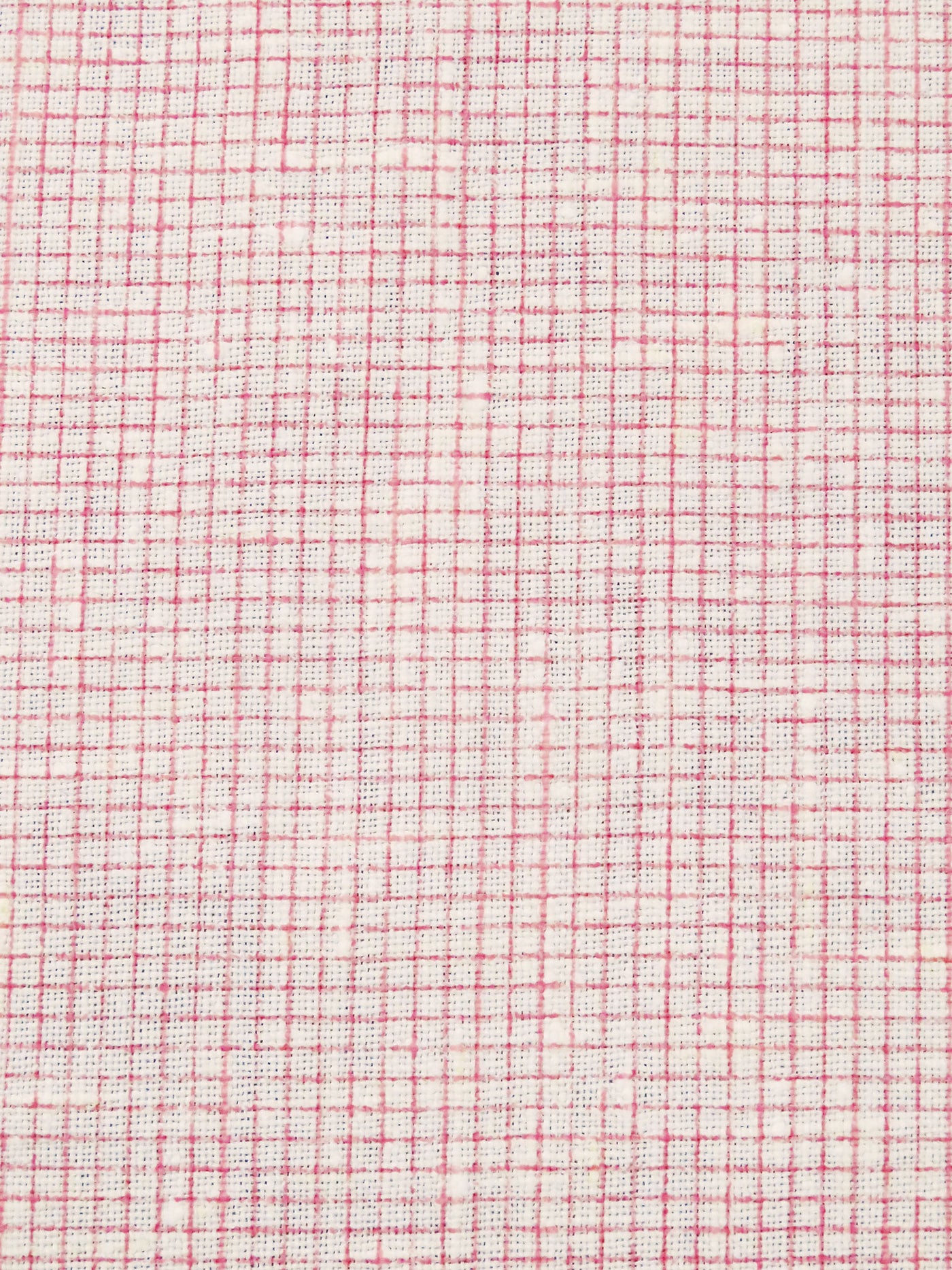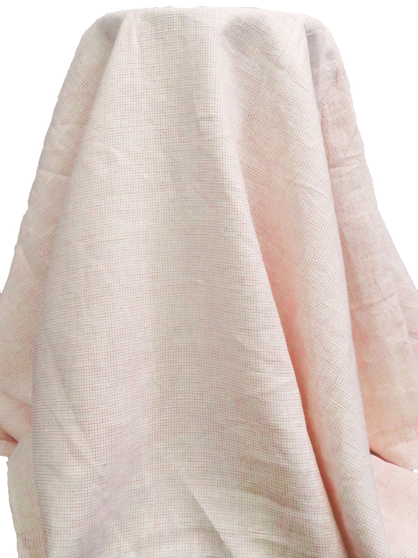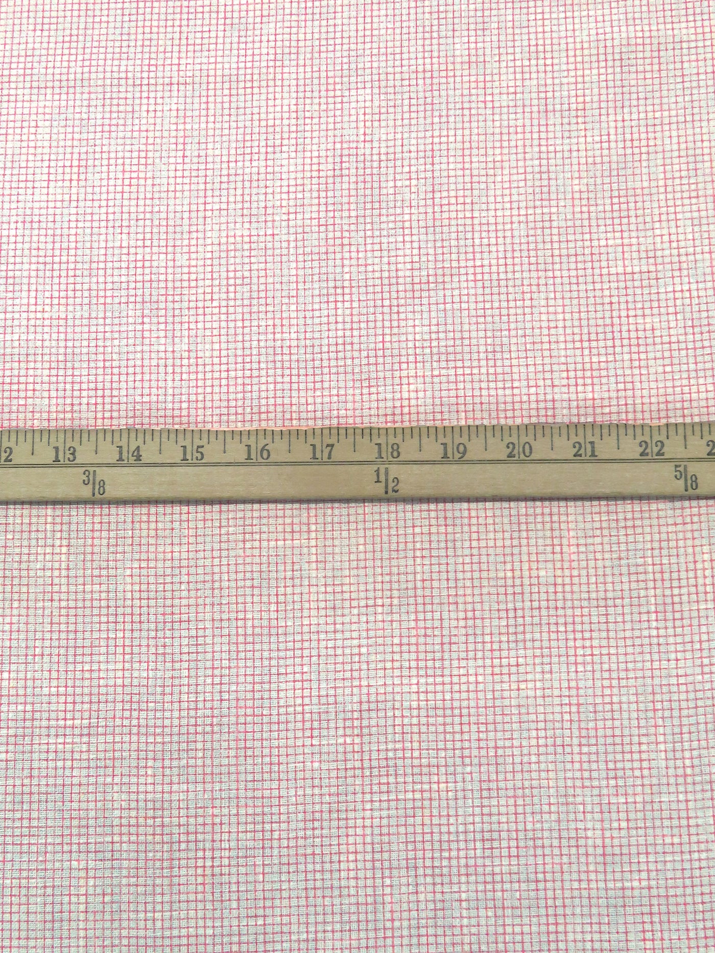Off-White/Coral Pink 100% Linen Printed Grid Linen Suiting 58W
