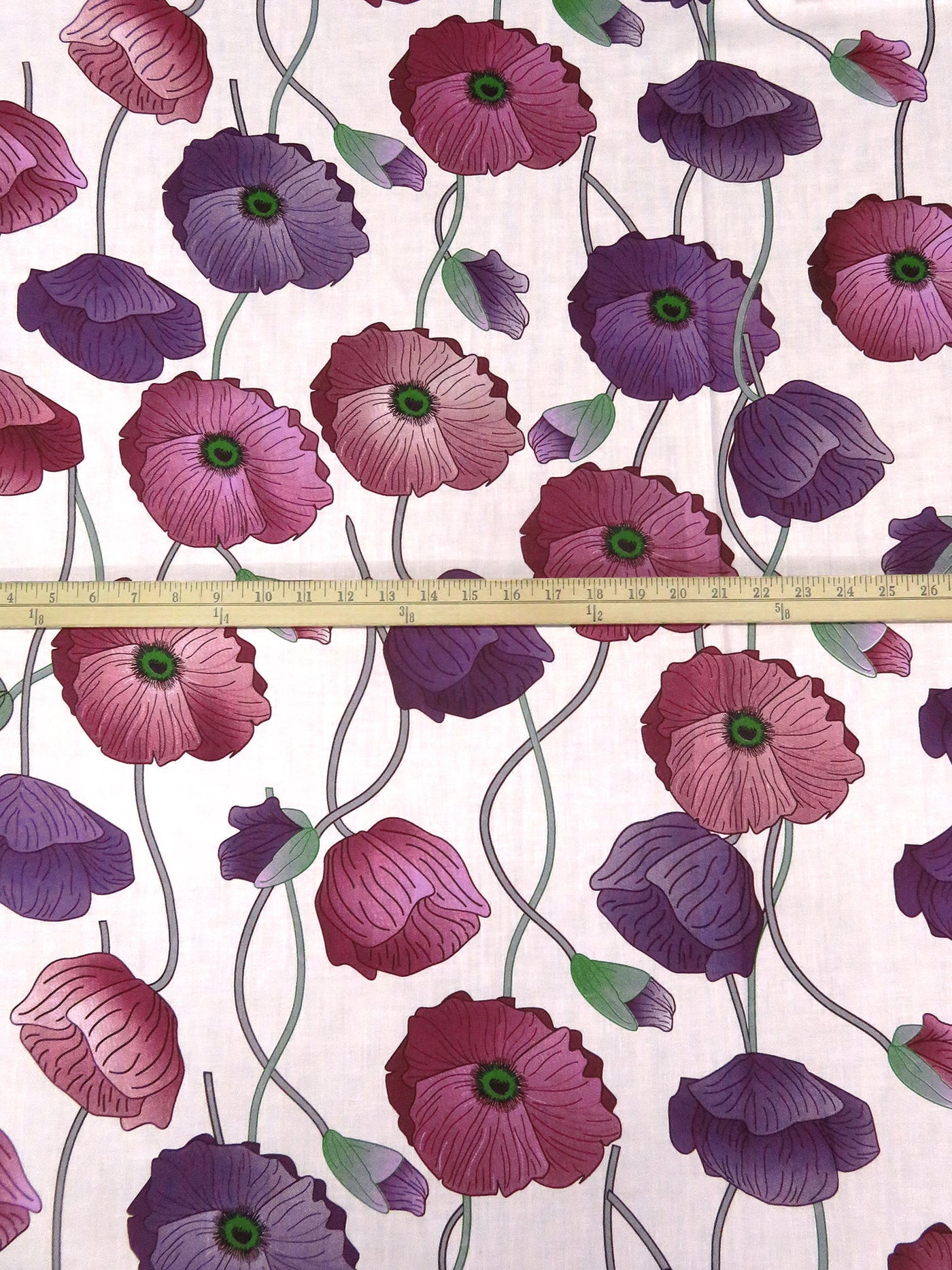 White/Japanese Violet/Muted Claret/Multi 100% Cotton Large Floral Print Voile 56W