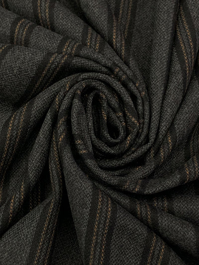 Charcoal/Black/Bronze 100% Wool Vertical Stripe Flannel Suiting - NY Designer - 58W