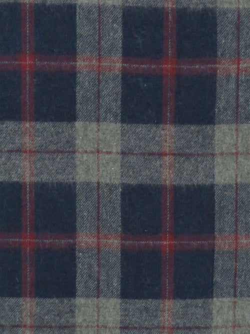 Navy Blue/Wolf Gray/Burgundy 100% Cotton Plaid Weave Flannel Shirting 52W