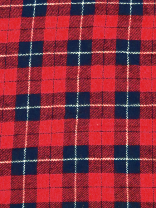 Crimson/Dark Navy/White 100% Cotton Plaid Weave Yarn-Dyed Flannel Shirting 56W