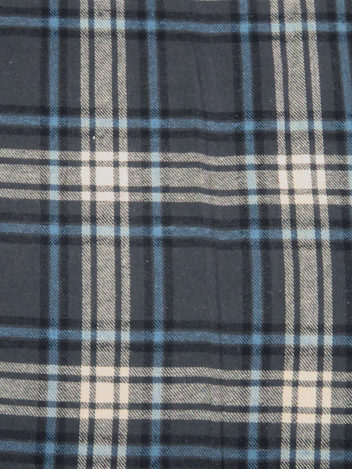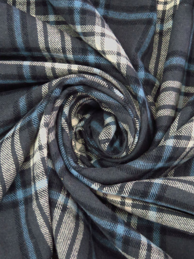 Navy/White/Black 100% Cotton Plaid Weave Yarn-Dyed Flannel Shirting 54W