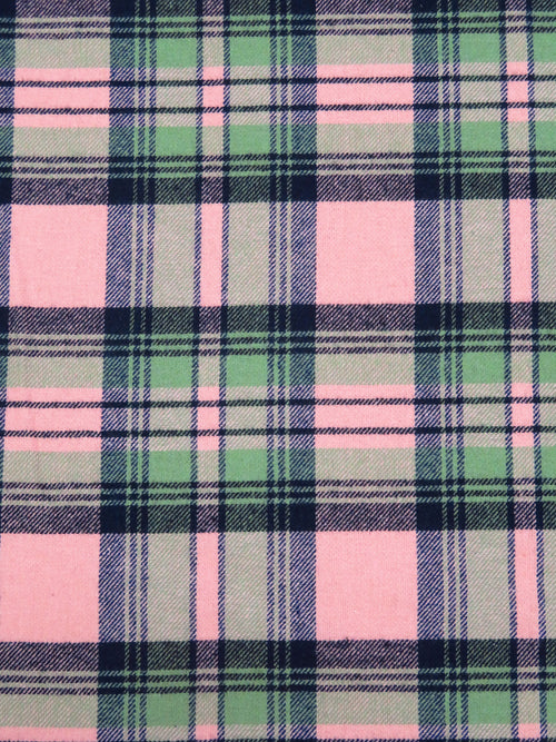 Spanish Pink/Midnight Navy/Asparagus/Black 100% Cotton Plaid Weave Flannel Shirting 56W