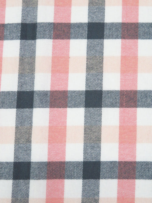 White/Pale Peach/Anchor Gray/Pale Salmon 100% Cotton Plaid Weave Yarn-Dyed Flannel Shirting 54W