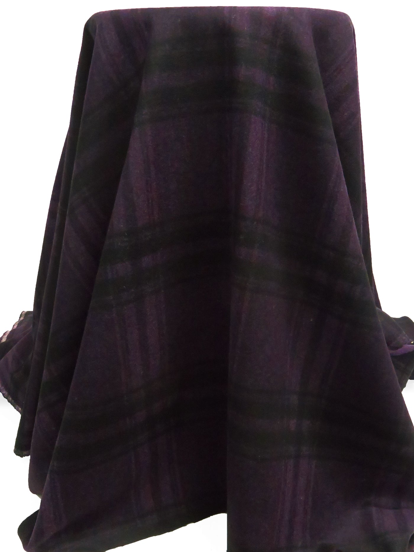 Dark Royal Purple/Black Wool/Polyester Plaid Heavy Flannel Suiting 60W