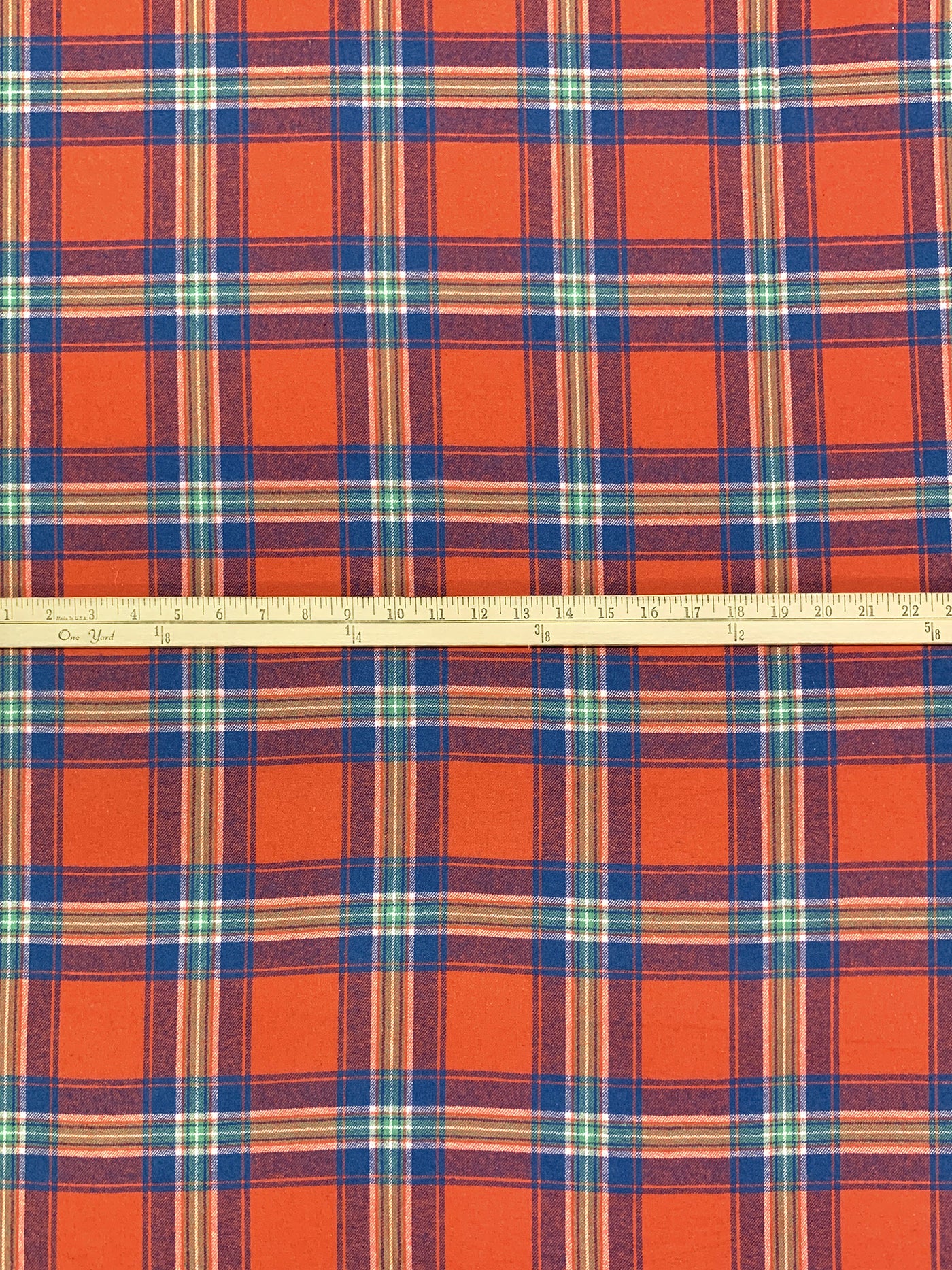 Sunset Orange/Dark Cerulean/White 100% Cotton Plaid Weave Yarn-Dyed Flannel Shirting 58W