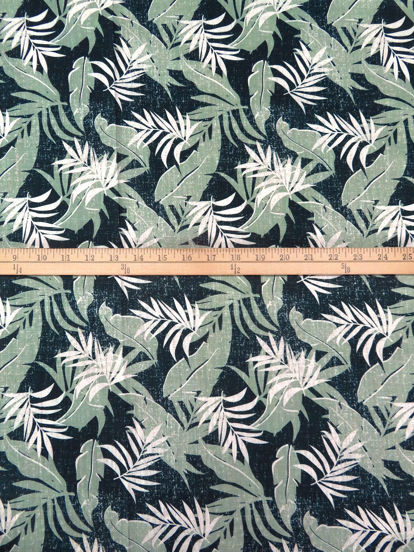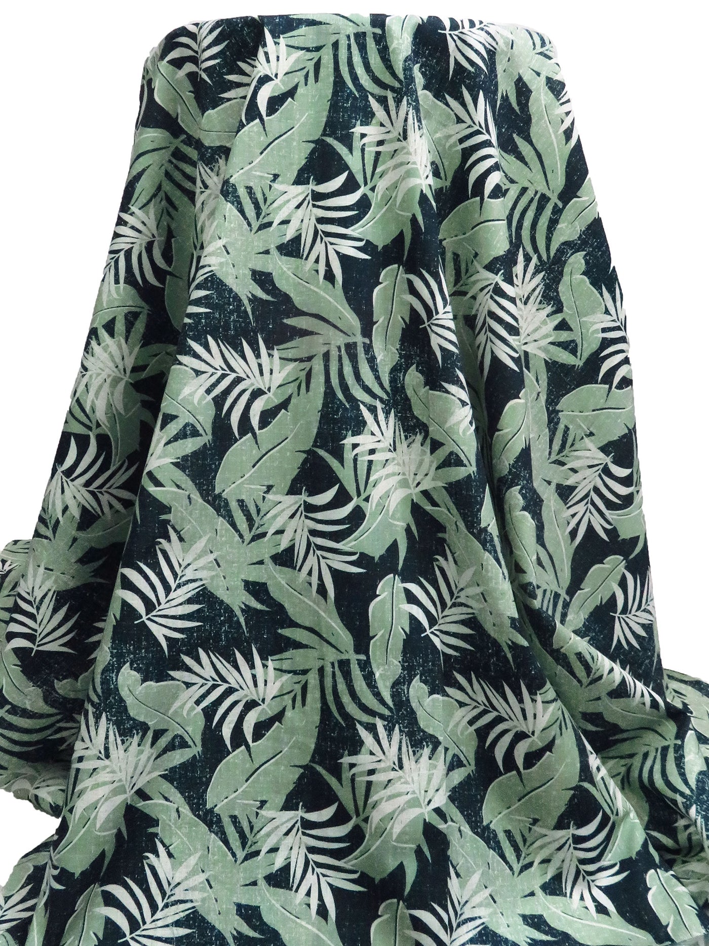 Dusty Celadon/White/Dark Jungle Green 100% Cotton Tropical Leaf Print Slubbed Lawn 57W