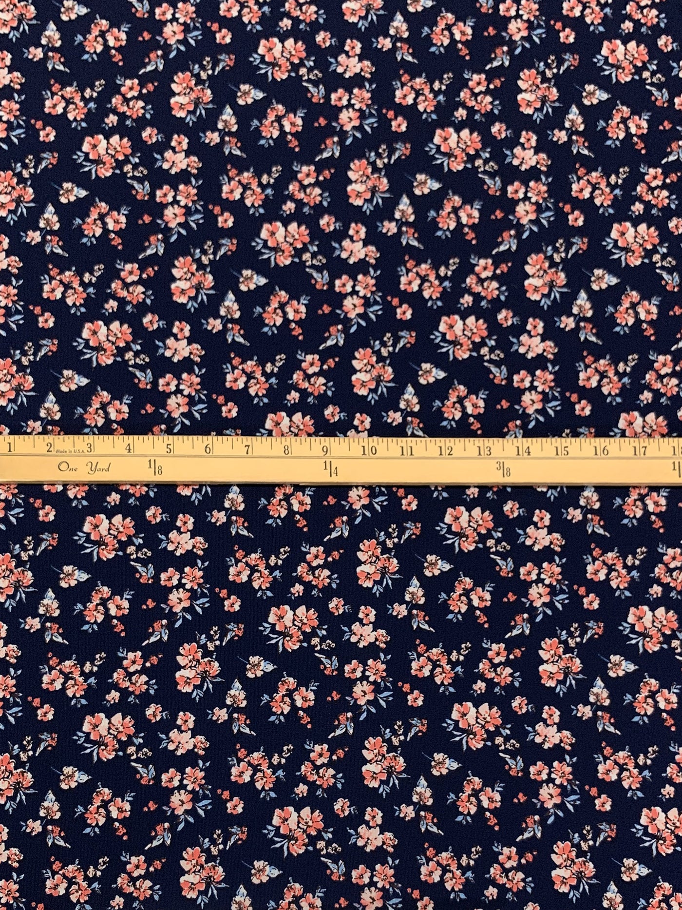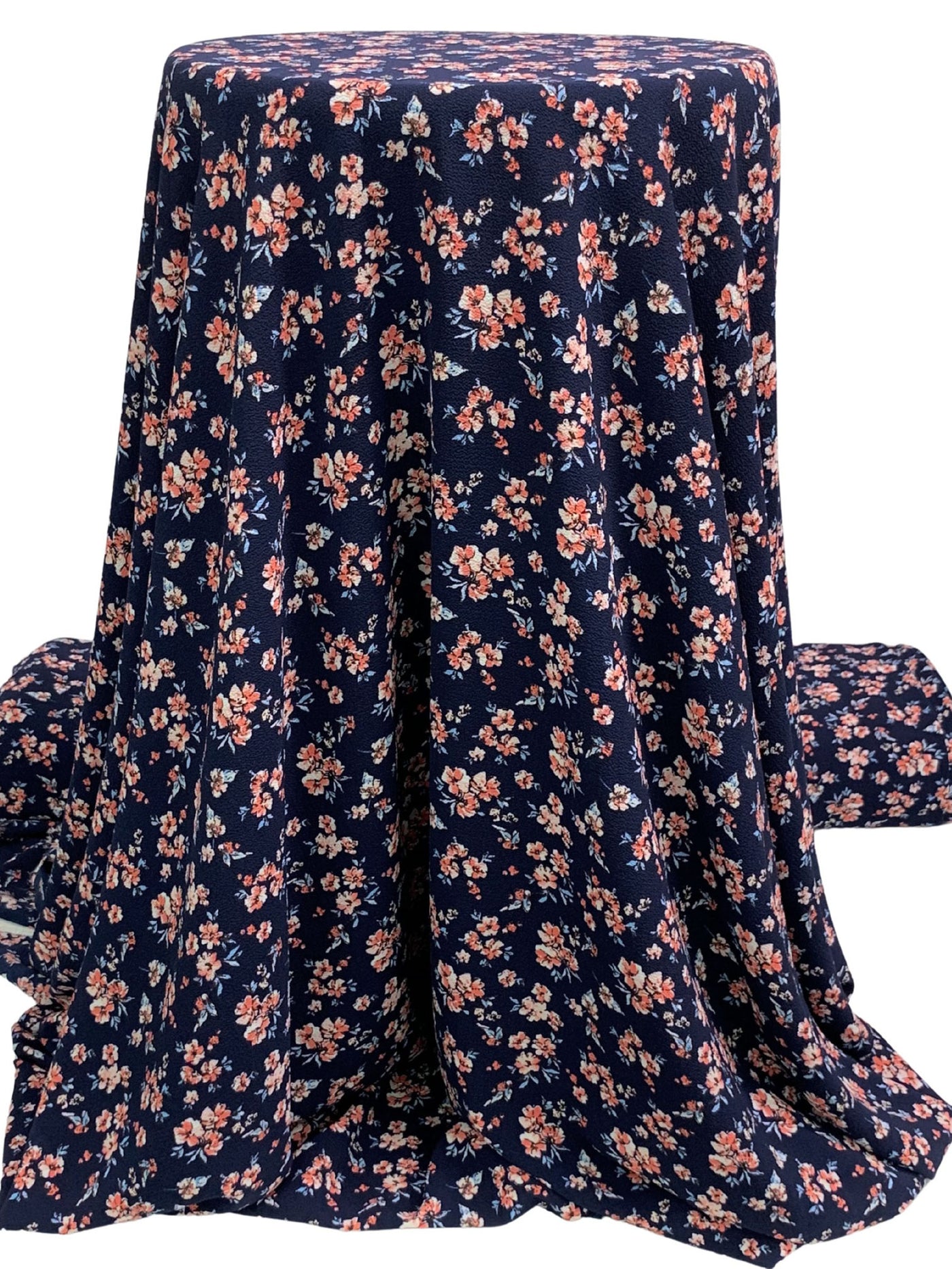 Navy/Old Rose/Cerulean Frost 100% Polyester Floral Print Bubble Crepe 58W
