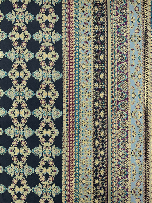 Navy/Wheat/Moonstone Blue/Multi Polyester/Lycra Double Border Vertical Stylized Floral Stripe Print DTY Knit 58W