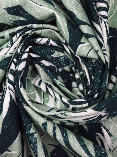 Dusty Celadon/White/Dark Jungle Green 100% Cotton Tropical Leaf Print Slubbed Lawn 57W