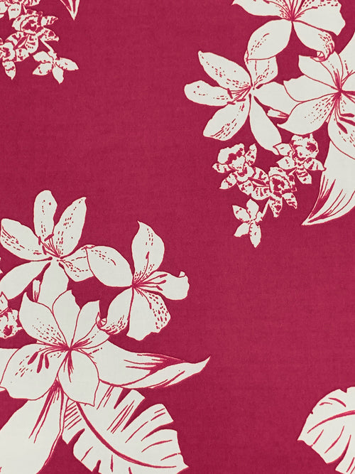 Jasper Red/White/Midnight Navy 100% Cotton Tropical Leaf Print Slubbed Lawn 57W
