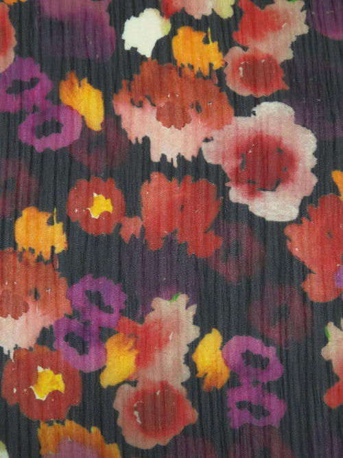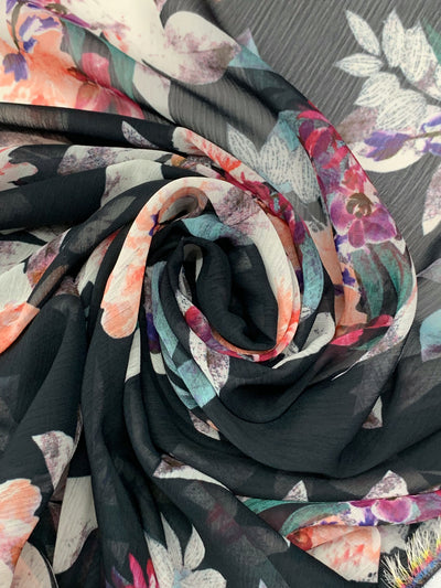 Black/Dark Salmon/Boysenberry/Multi 100% Polyester Floral Print Crinkle Chiffon - Imported From Italy - 57W