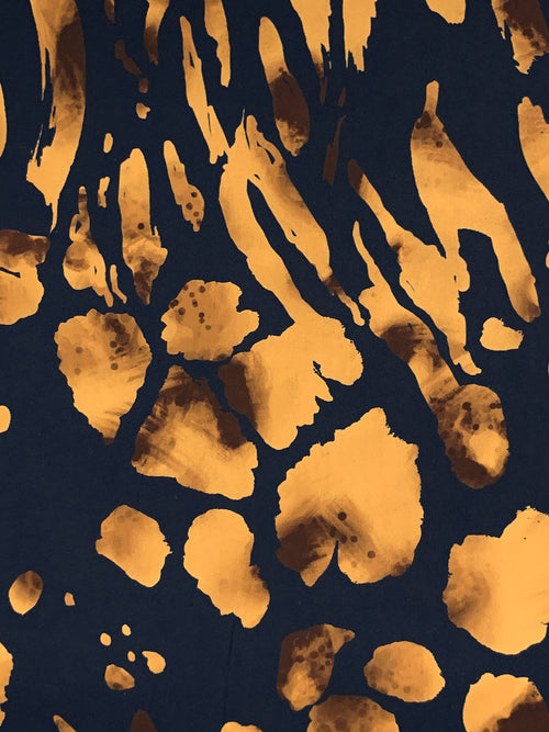 Midnight Prussian Blue/Aztec Gold 100% Polyester Abstract Print Charmeuse - Imported From Italy - 58W