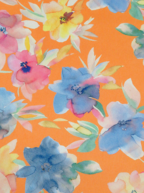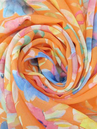 Royal Orange/Lemon/Iceberg/Multi 100% Rayon Watercolor Floral Print Georgette - Imported from Italy - 50W