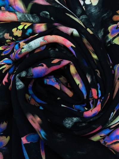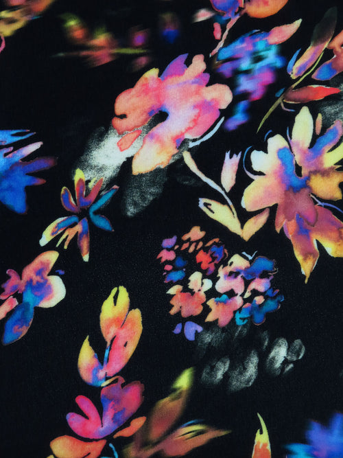 Black/Purple/Lemon/Multi 100% Rayon Watercolor Floral Print Georgette - Imported From Italy - 50W
