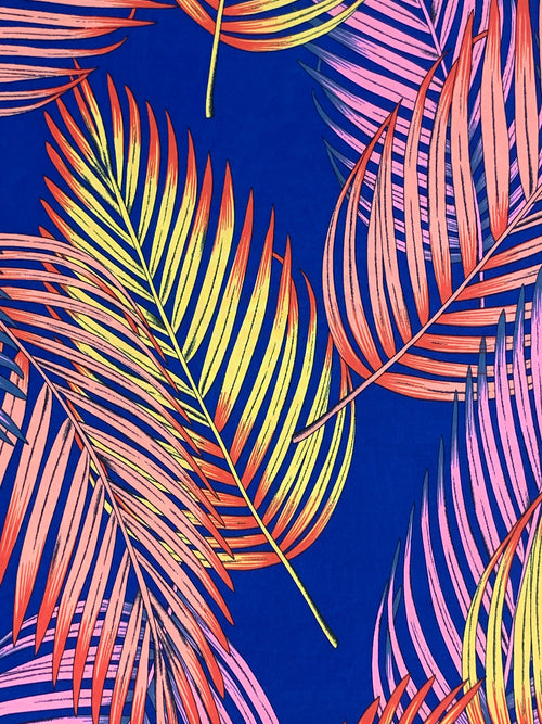Cobalt Blue/Melon Pink/Dandelion/Multi Polyester/Lycra Tropical Fern Print FTY Knit 58W