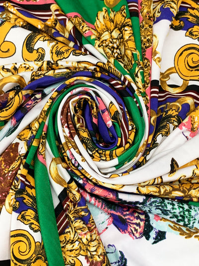 Vegas Gold/Dark Sea Green/Black/White Polyester/Lycra Floral Print ITY Knit - NY Designer - 58W