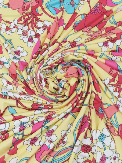 Pale Canary/Cardinal Red/Bright Moonstone Blue/Multi Polyester/Lycra Floral Print FTY Knit 56W