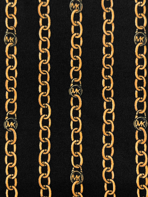 Black/Gold Polyester/Lycra Vertical MK Chain Print ITY Knit - NY Designer - 58W