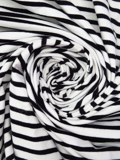 White/Black Polyester/Lycra Horizontal Stripe Weave Jersey Knit 64W