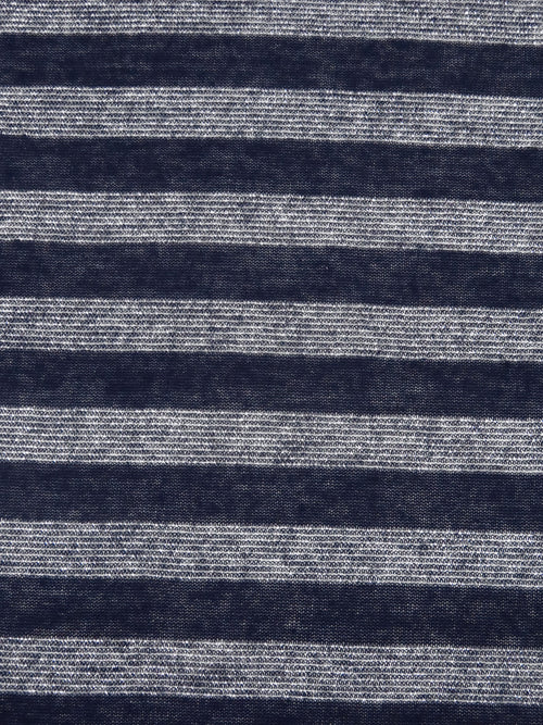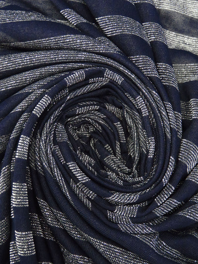 Midnight Navy/Silver Rayon/Cotton/Metallic Horizontal Foil Stripe Weave Tissue Jersey Knit 64W
