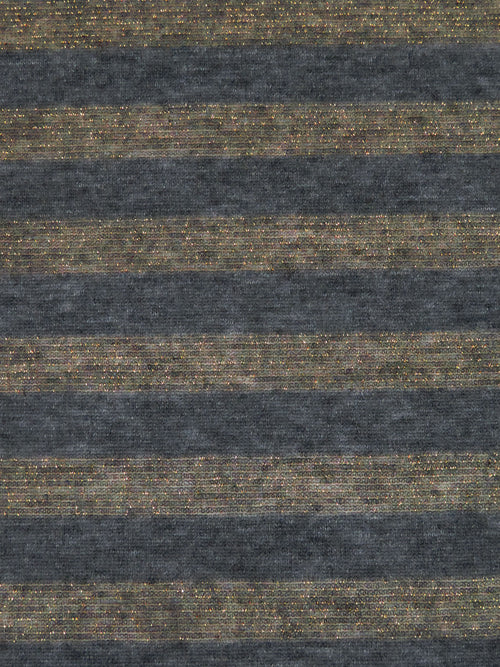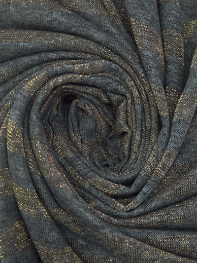 Dark Anchor Gray/Gold Rayon/Cotton/Metallic Horizontal Foil Stripe Weave Tissue Jersey Knit 64W
