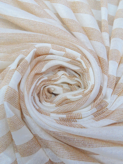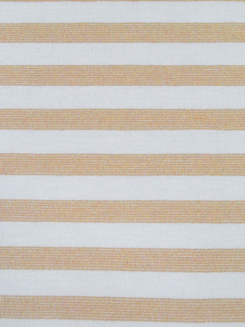 White/Gold Rayon/Cotton/Metallic Horizontal Foil Stripe Weave Tissue Jersey Knit 66W