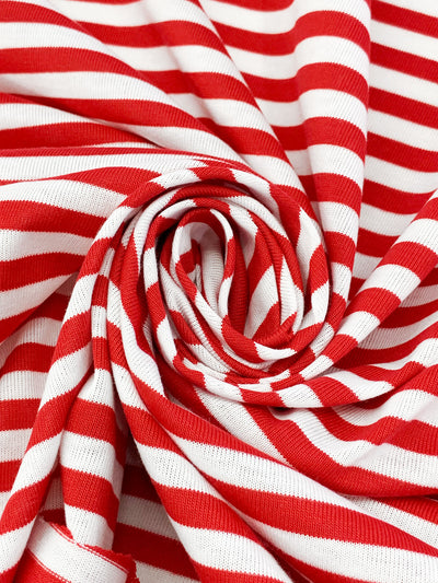 Red/White Cotton/Polyester Horizontal Stripe Jersey Knit 59W