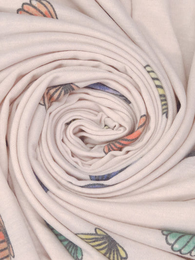 Champagne Pink/White 100% Cotton Floral Print Jersey Knit - NY Designer - 62W