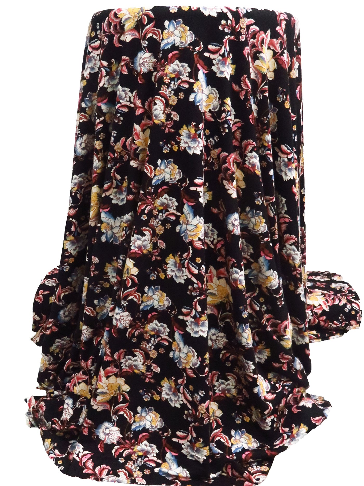 Black/Salmon Pink/Cornflower/Multi Rayon/Lycra Ornate Floral Print Jersey Knit 57W