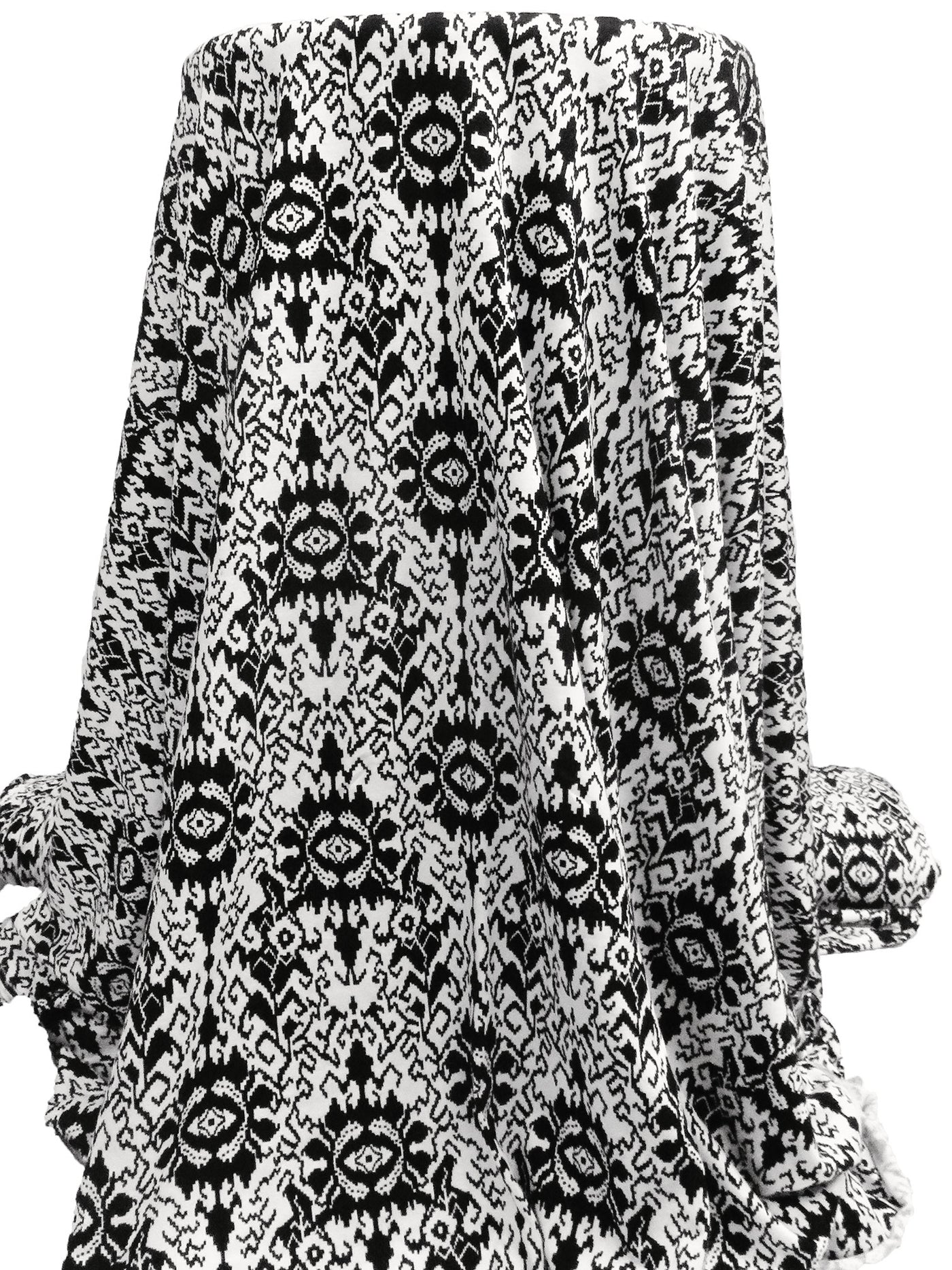 Black/White Rayon/Lycra Abstract Pixel Print Jersey Knit 60W