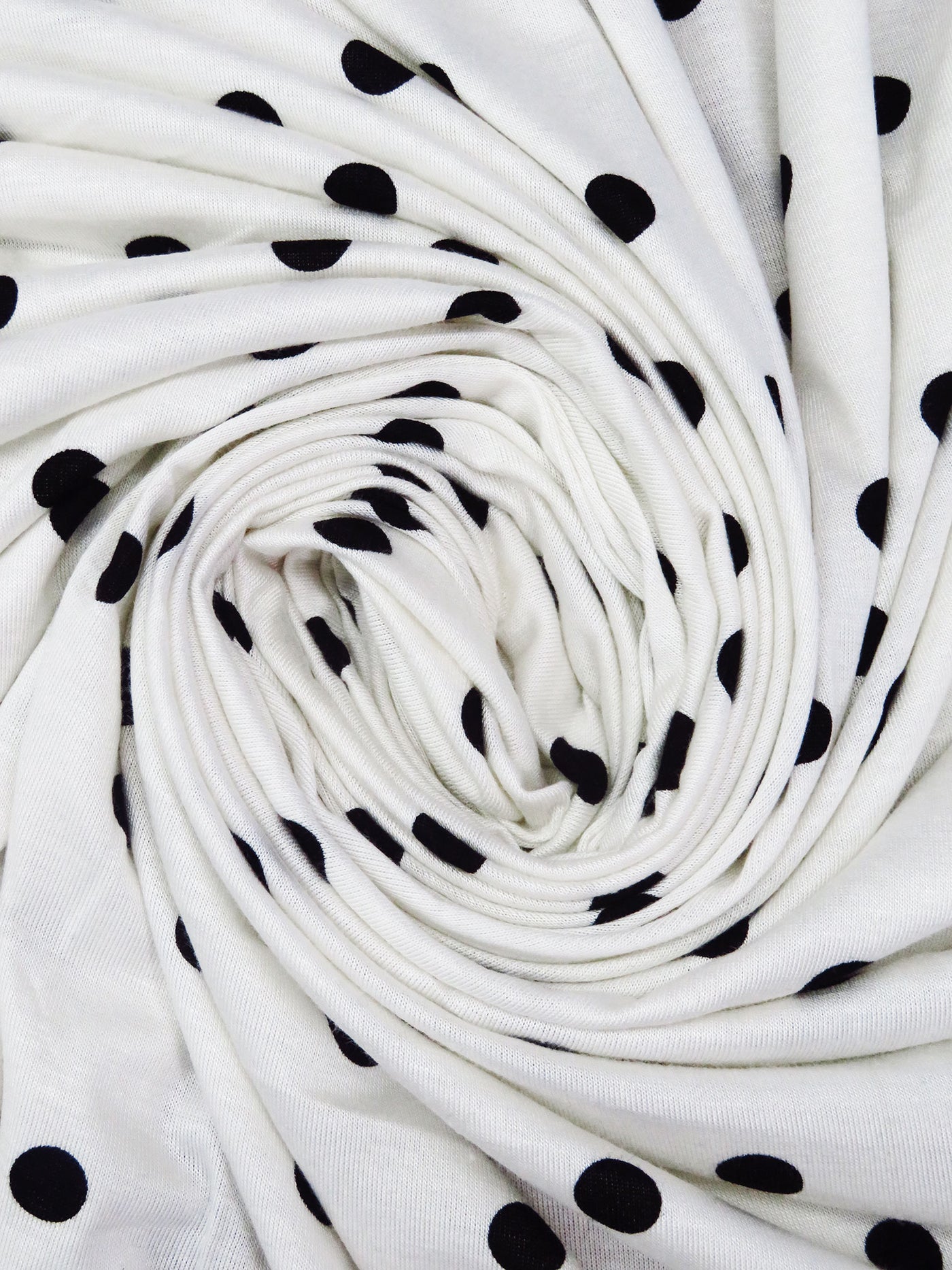Off-White/Black Rayon/Lycra Dot Print Jersey Knit 59W
