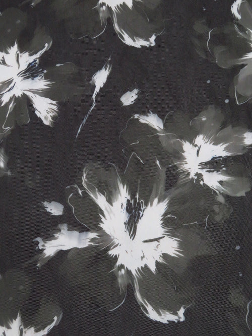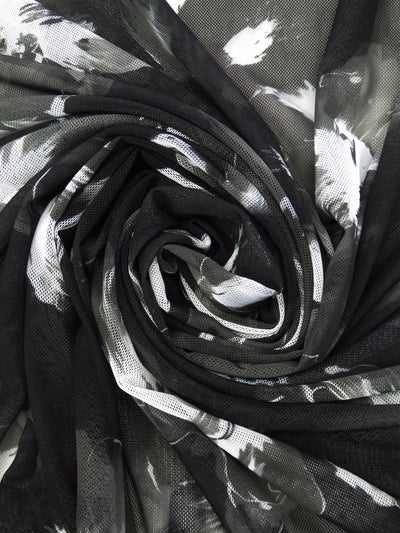 White/Black/Dim Gray Nylon/Lycra Floral Print Mesh Knit - NY Designer - 58W