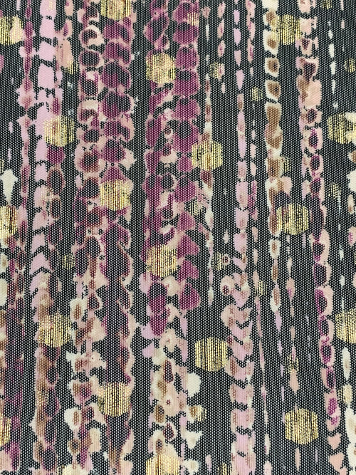 Gold/Queen Pink/Black Nylon/Lycra Abstract Dot Print Mesh Knit 52W