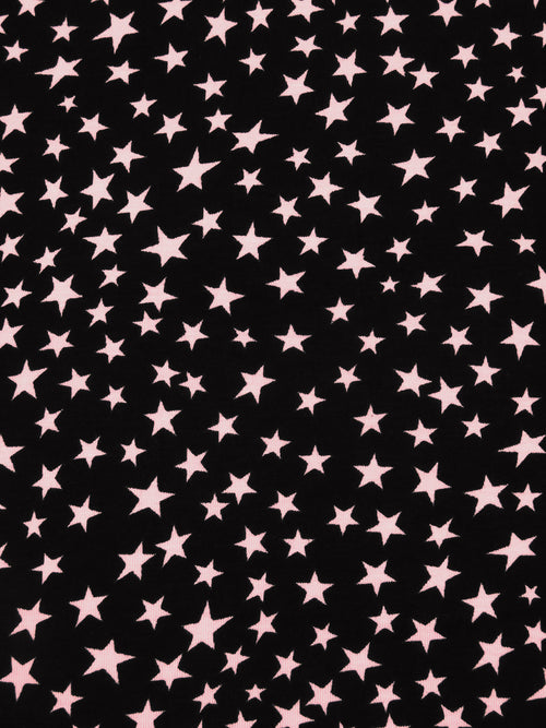 Black/Light Pink Rayon/Lycra Scattered Stars Print Jersey Knit - NY Designer - 64W