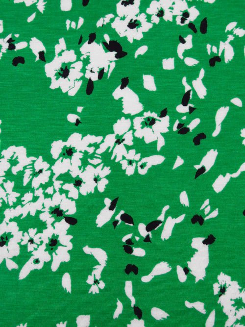 Irish Green/Black/White Rayon/Lycra Abstract Floral Print Jersey Knit 64W