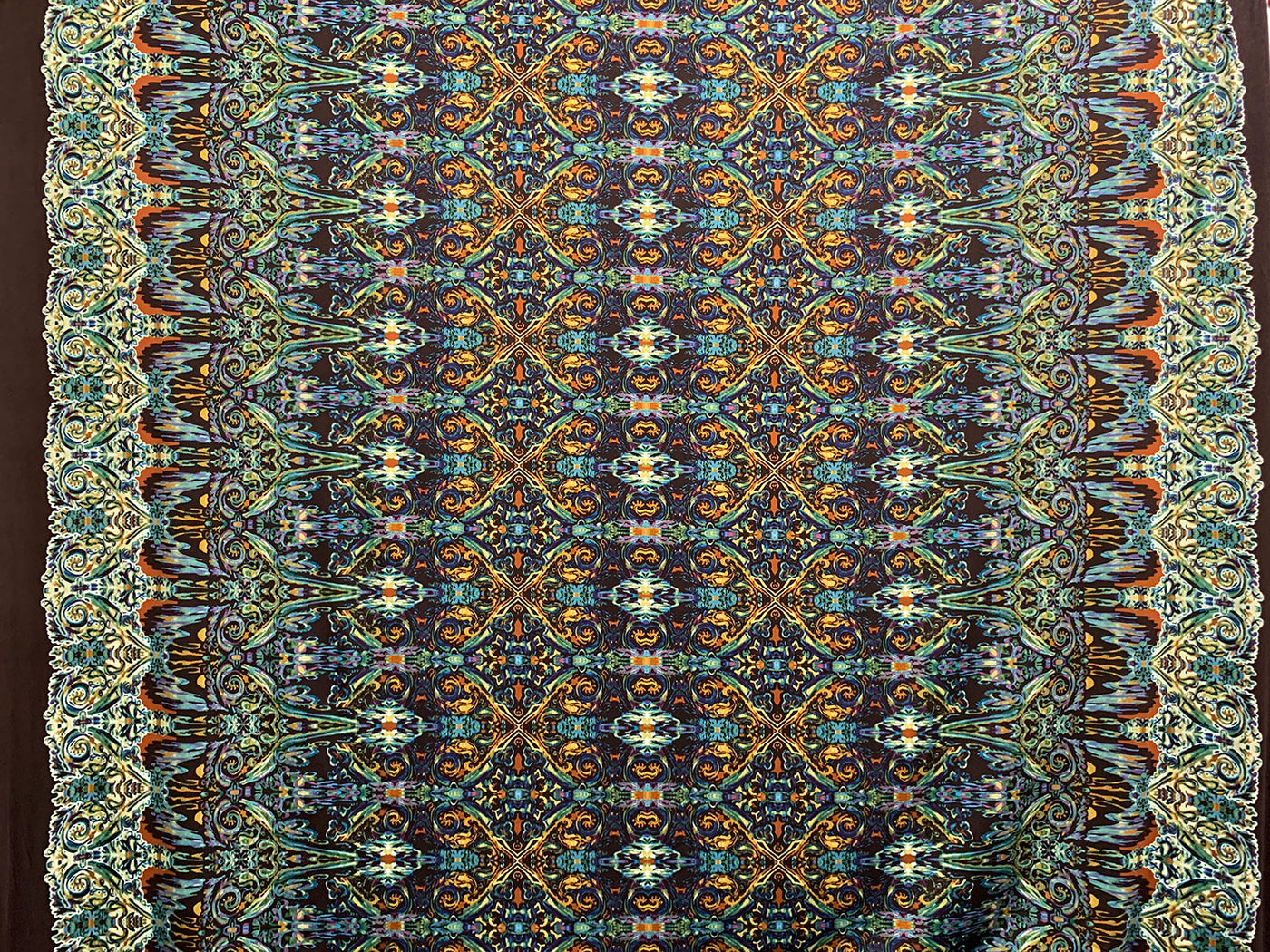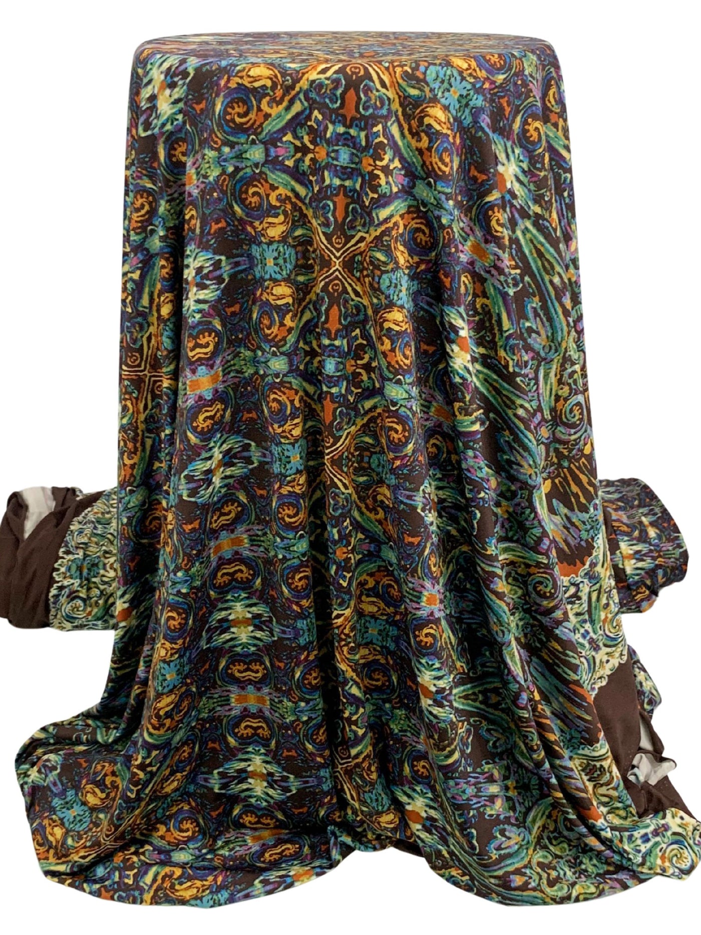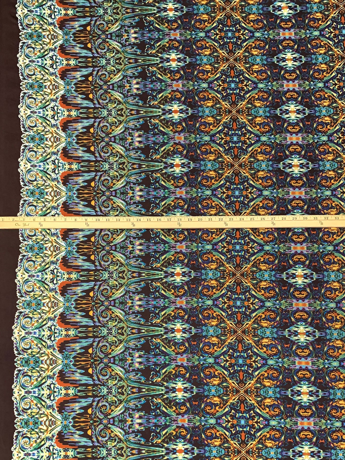 Spice/Steel Blue/Brown/Multi Polyester/Lycra Large Double Border Abstract Ornate Print DTY Knit 58W