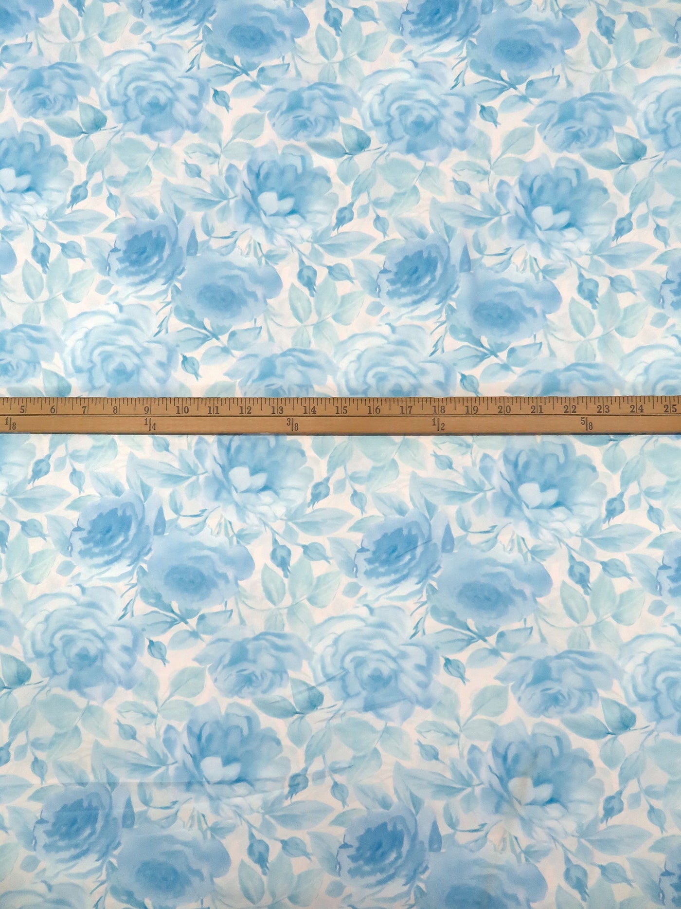 White/Pale Cerulean/Pastel Blue/Multi Polyester/Lycra Floral Print DTY Knit - NY Designer - 60W