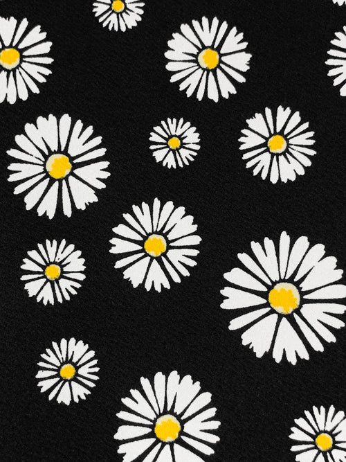 Black/Deep Lemon/White Polyester/Lycra Daisy Print Liverpool Double Knit 58W