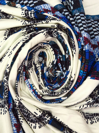 Cream/Black/Dark Powder Blue/Multi Rayon/Lycra Large Abstract Framework Print Jersey Knit - Imported From Italy - 60W
