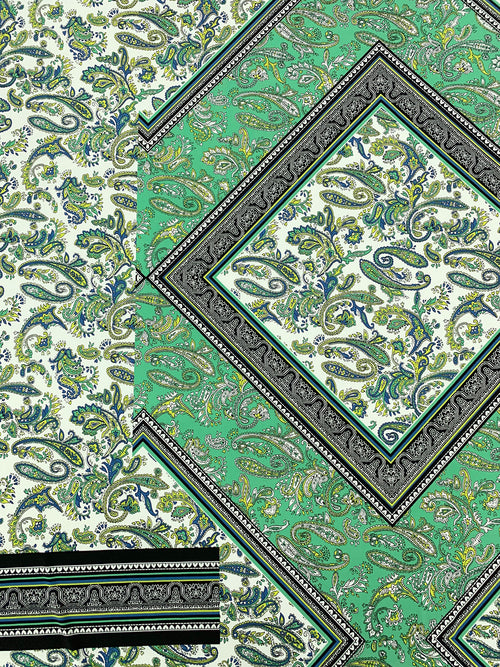 SOLD BY THE PANEL ONLY - Medium Sea Green/Lapis Blue/Bitter Lemon/Multi Polyester/Lycra Large Single Border Ornate Paisley ITY Knit - Famous Dress Designer - 59W