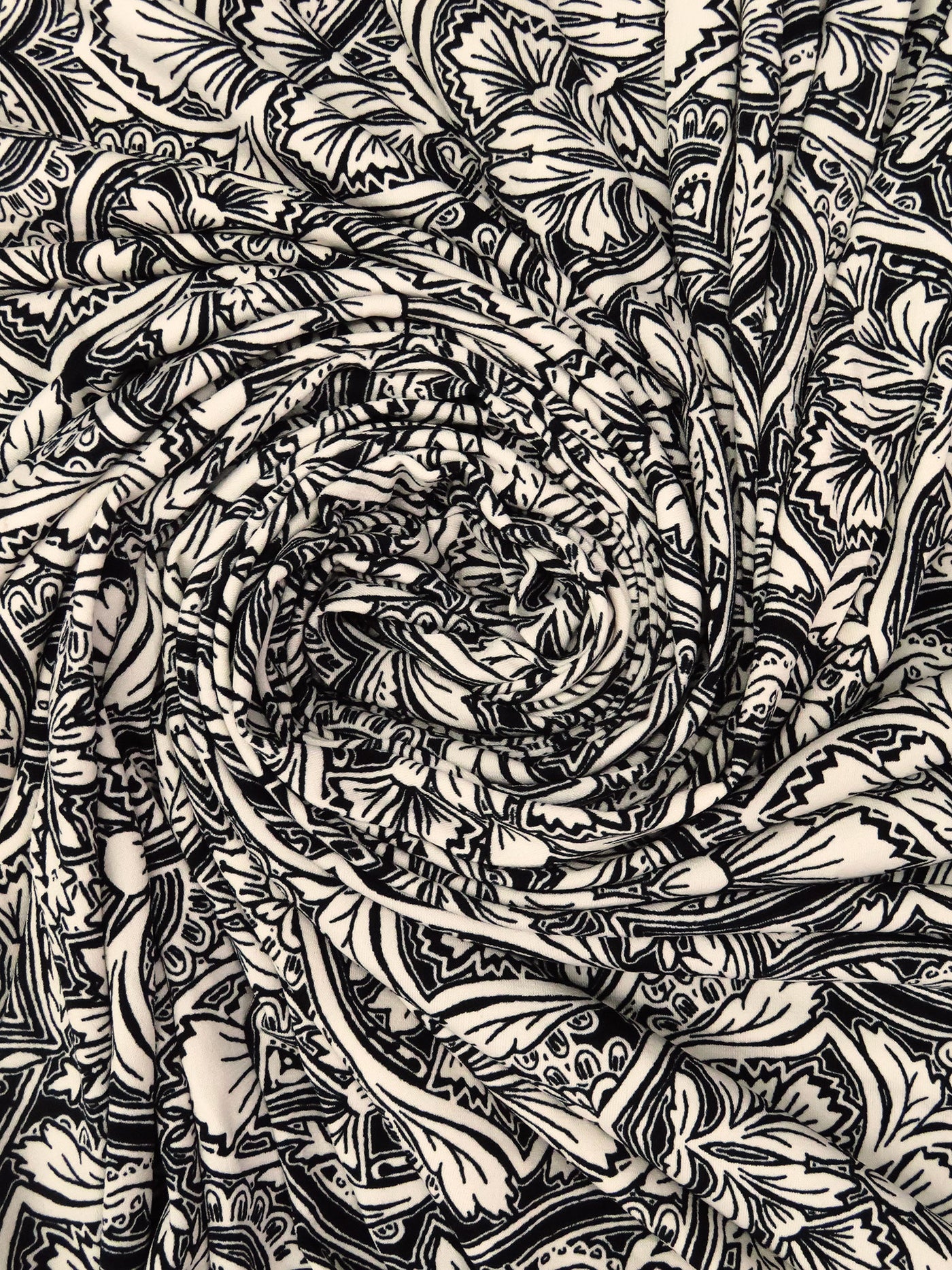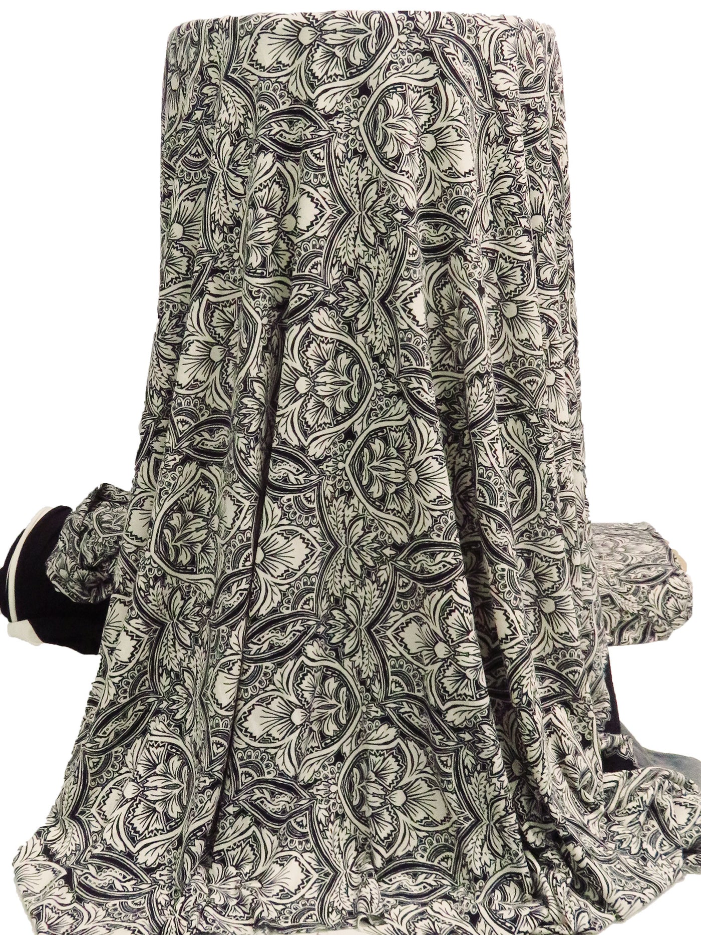 Black/Bone Polyester/Lycra Double Border Ornate Print ITY Knit - NY Designer - 59W