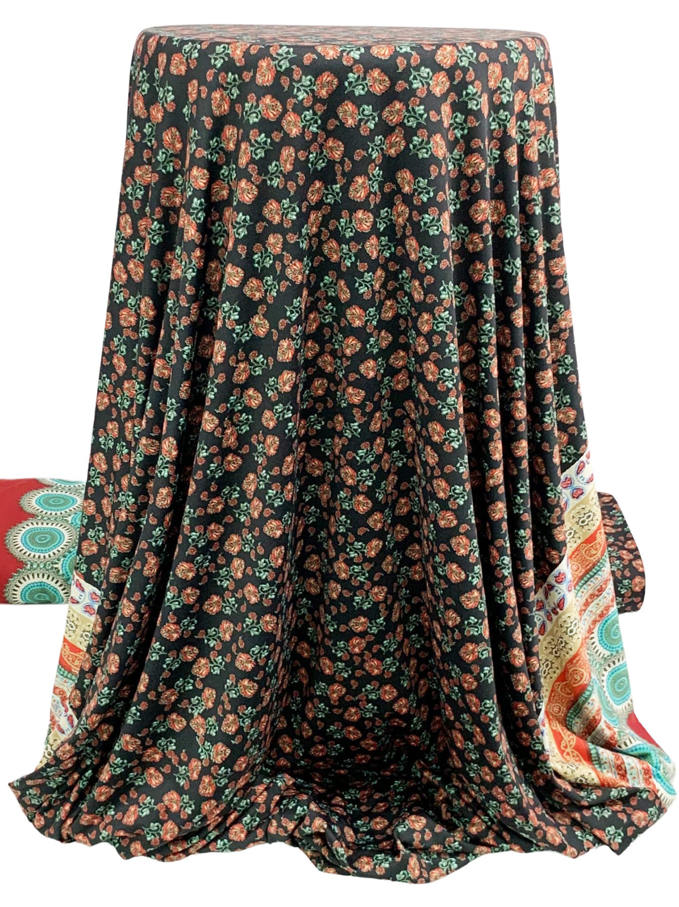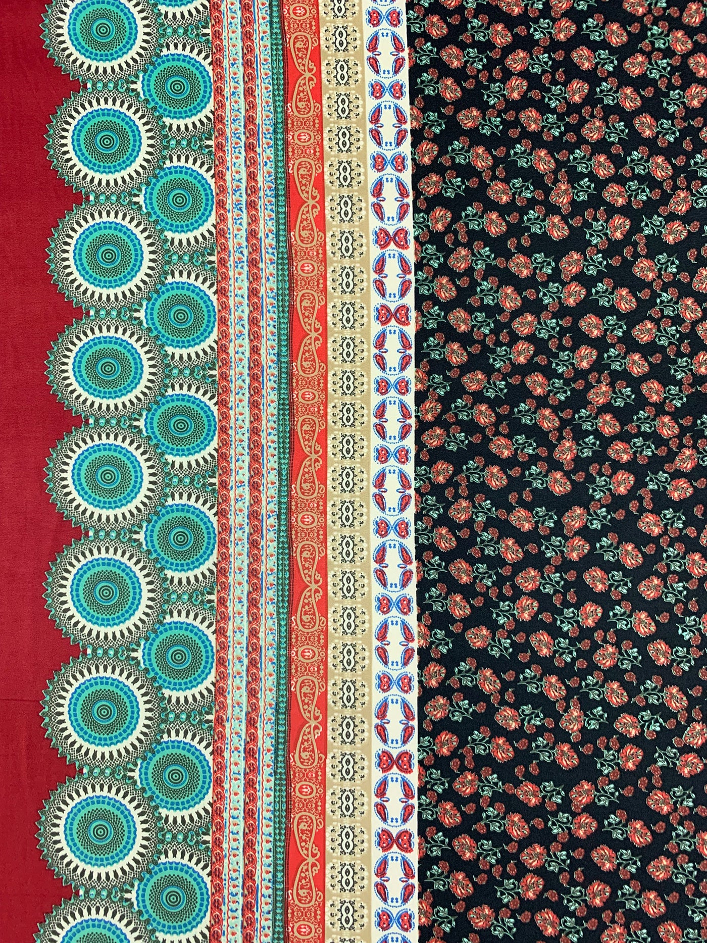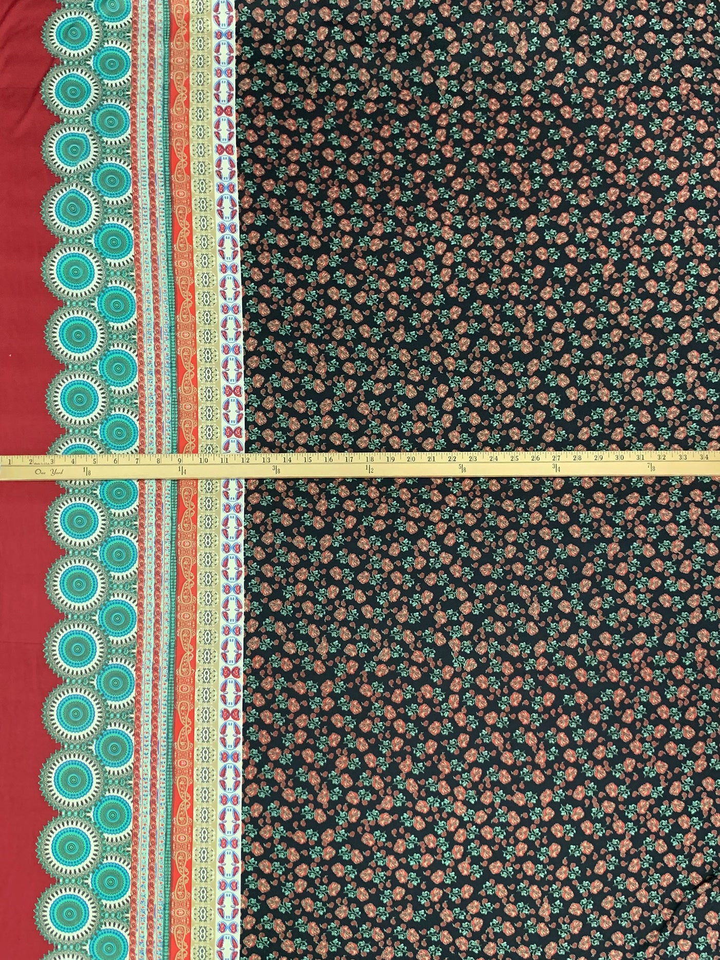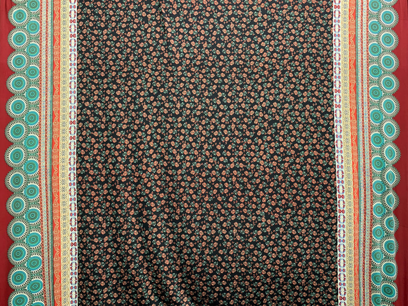 Black/Garnet/White/Multi Polyester/Lycra Stylized Double Border Floral Print DTY Knit 60W