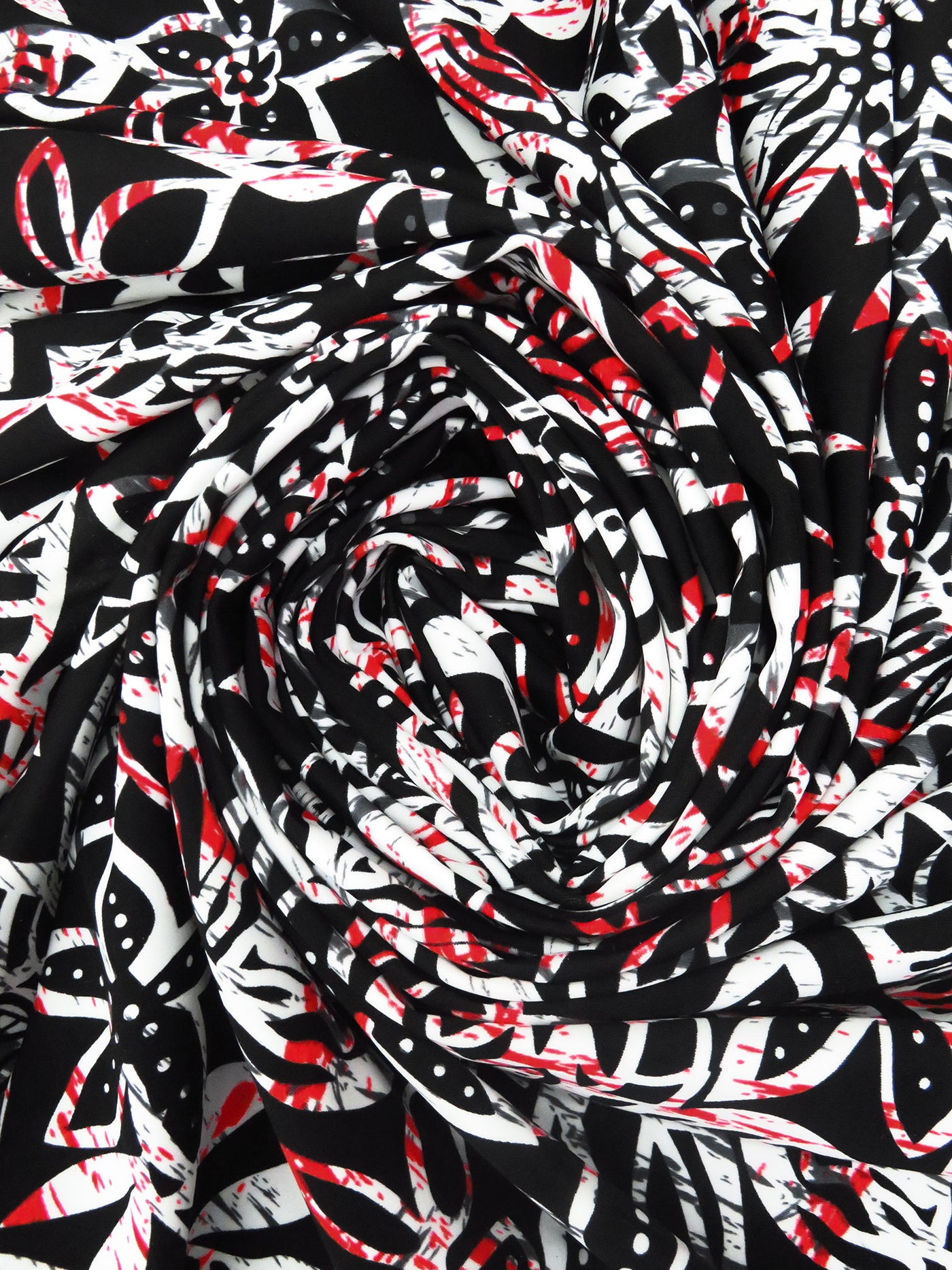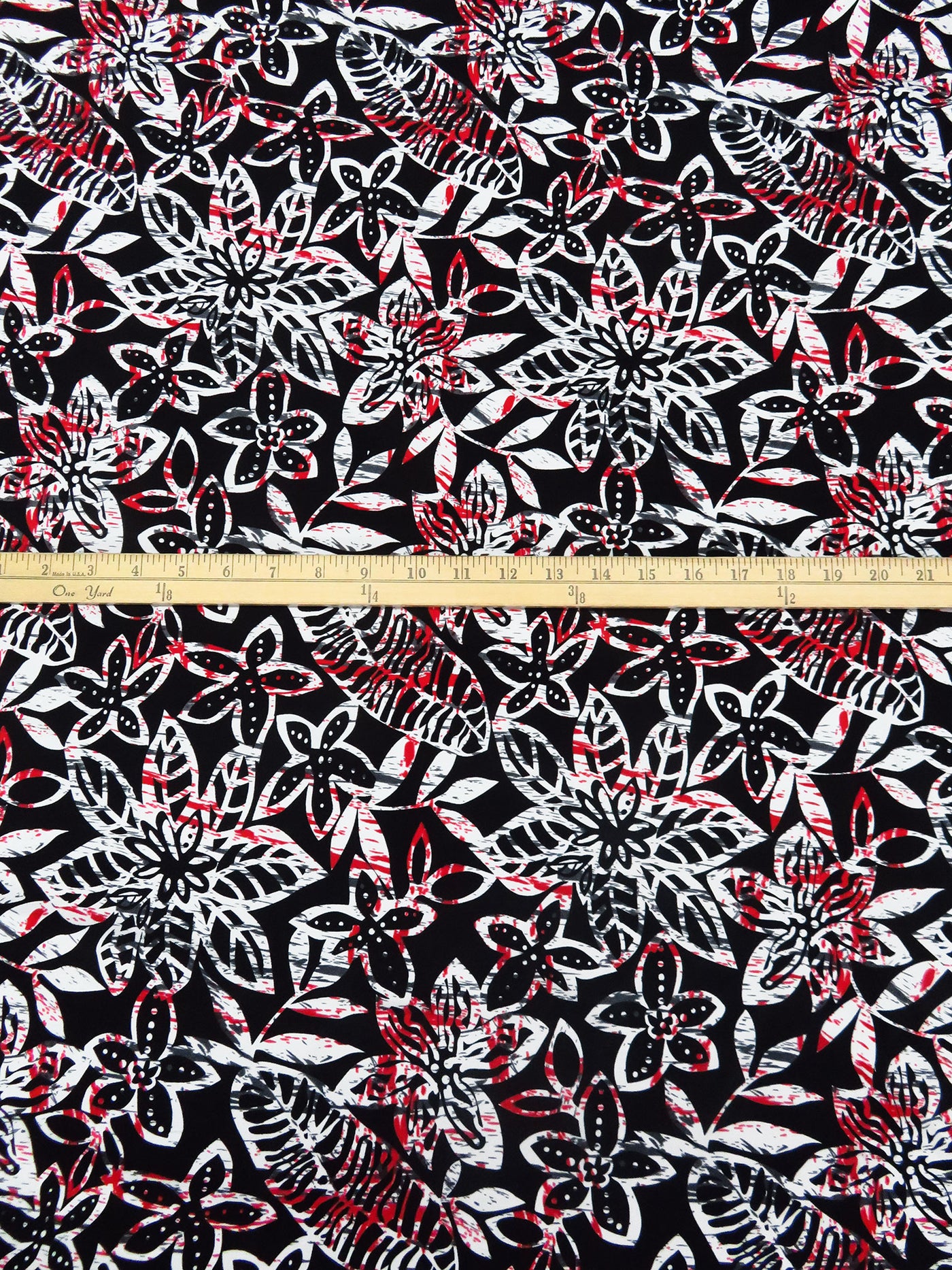 Black/Red/White/Dark Gray Nylon/Lycra Tropical Floral Print Swimwear Knit 59W
